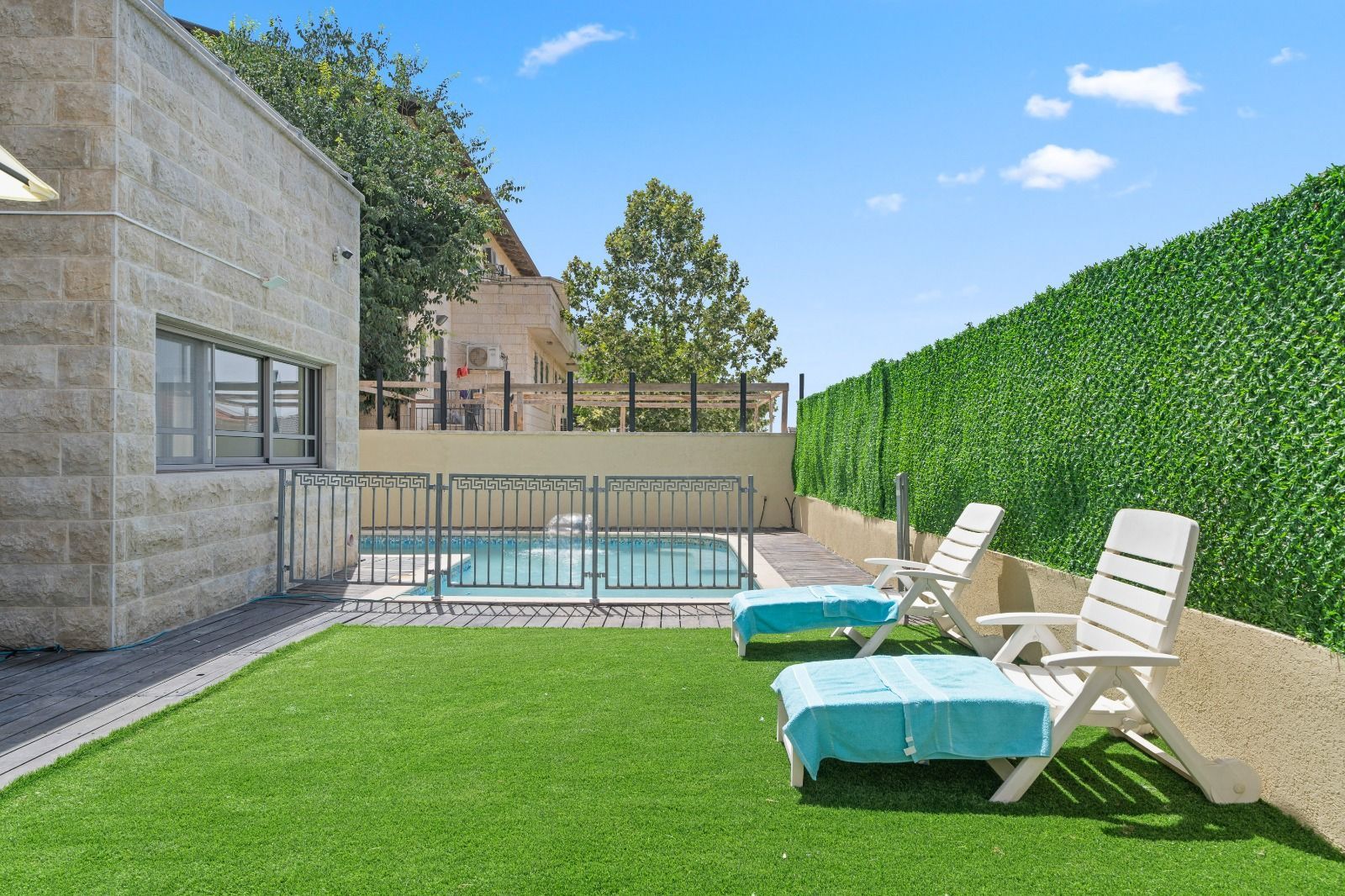 בריכה גדולה ובטוחה עם שער לילדים