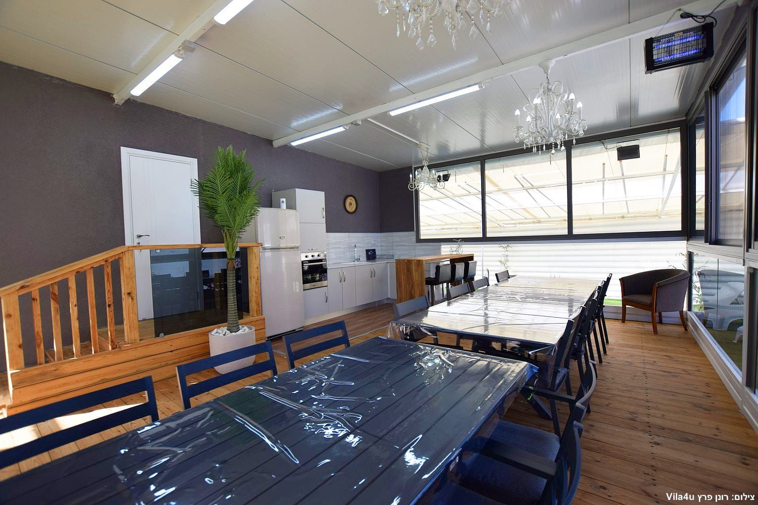 חדר אוכל ענק. מקורה ממוזג .